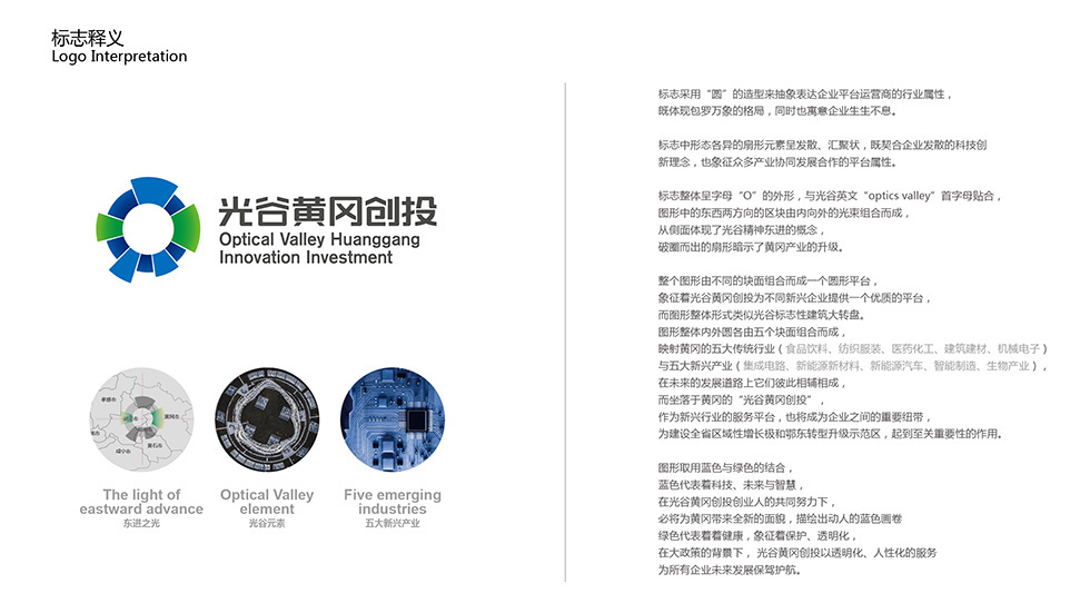 項(xiàng)目背景: 武漢光谷黃岡科創(chuàng)投資開發(fā)有限公司,2018年06月04日成立,注冊(cè)資本50000萬元,隸屬武漢高科集團(tuán),經(jīng)營范圍包括土地整理、開發(fā);城市基礎(chǔ)設(shè)施、公用事業(yè)、基礎(chǔ)產(chǎn)業(yè)的投資建設(shè)、運(yùn)營;房地產(chǎn)開發(fā)經(jīng)營;建設(shè)項(xiàng)目管理、代理;工程項(xiàng)目管理、服務(wù)與咨詢;財(cái)政委托投資和項(xiàng)目管理;為企業(yè)資本運(yùn)作提供投資咨詢;財(cái)務(wù)顧問服務(wù)。艾的爾設(shè)計(jì)承接其品牌VI設(shè)計(jì),標(biāo)志采用“圓”的造型來抽象表現(xiàn)企業(yè)運(yùn)營商的行業(yè)屬性,整個(gè)圖形由不同的塊面組合而成一個(gè)圓形平臺(tái),類似光谷標(biāo)志性建筑大轉(zhuǎn)盤,內(nèi)外圓各由五個(gè)塊面組合而成,映射黃岡的五大傳統(tǒng)行業(yè)與五大新興產(chǎn)業(yè)。圖形取用藍(lán)色與綠色的結(jié)合,藍(lán)色代表著科技、未來與智慧。綠色代表著健康,象征著保護(hù)、透明化,為所有企業(yè)未來發(fā)展保駕護(hù)航,項(xiàng)目在有效時(shí)間內(nèi)獲得了客戶驗(yàn)收。